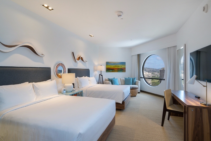 와이키키 센타의 하얏트 체인에 경제적인 호텔 입니다, 하얏트 센트럴 와이키키 비치 호텔 총 객실 230 개의 현대적인 객실과 스위트 룸은 고급 스러움을 자아냅니다. 깊은 욕조, 최신식 샤워기, 천장부터 바닥까지 내려 오는 대형 창문, 스마트 TV, 드라이 바, 헤어 드라이어 등 현대적인 편의 시설을 갖춘 넓고 잘 꾸며진 객실에서 지내십시오.