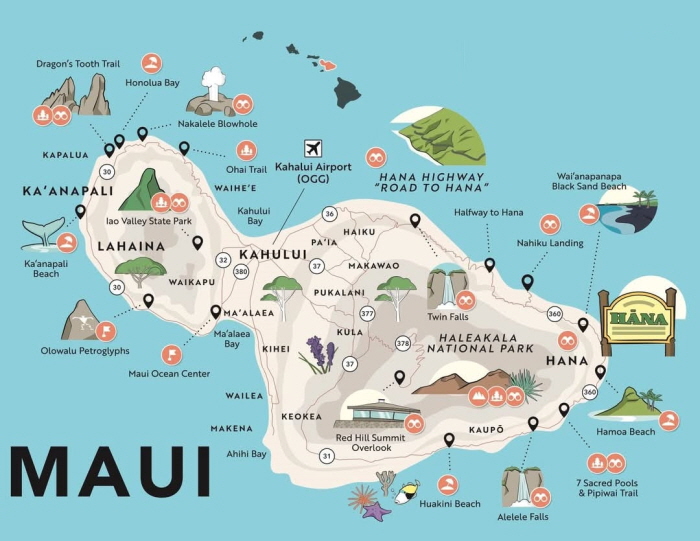 ① 이아오 밸리 스테이 파크 (Iao Valley State Monuments)④ 호오키파 비치 파크 (Ho'okipa Beach Park)