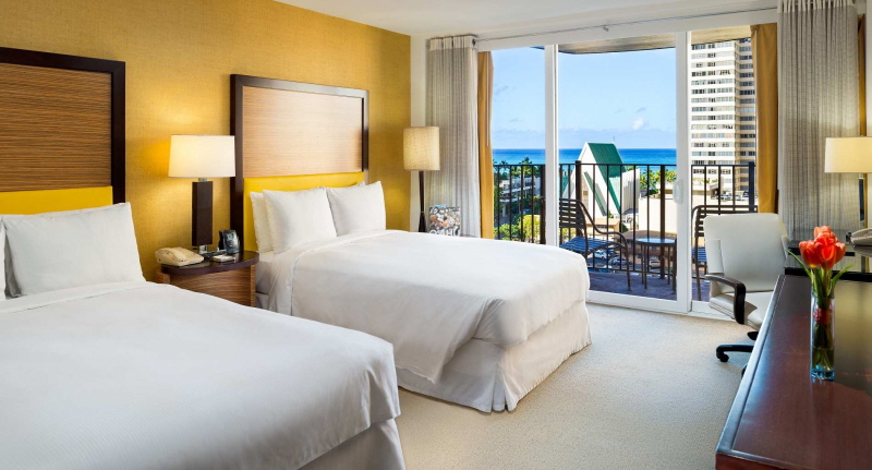힐튼 프린스 와이키키 호텔 대부분의 룸은 마운틴 & 오션뷰 룸이 있어서 산과 바다를 정면으로 바라보이는 오션룸은 와이키키 어떤 호텔 보다 바다가 잘보입니다. 10층 이상 오션뷰룸에서 전체 와이키키 바다을 감상할수 있습니다. 와이키키 비치는 도보로 약 3분 거리에 위치하고 있습니다. 호텔 야외 수영장 & 스파 는 호텔 9층에 자리 하고 있습니다.
